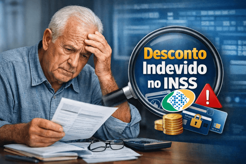 Desconto indevido no INSS é toda cobrança feita no benefício sem autorização válida do segurado. Isso pode acontecer por mensalidades de associação, contratos de empréstimo consignado não reconhecidos, cartão consignado ou outras retenções lançadas sem consentimento.